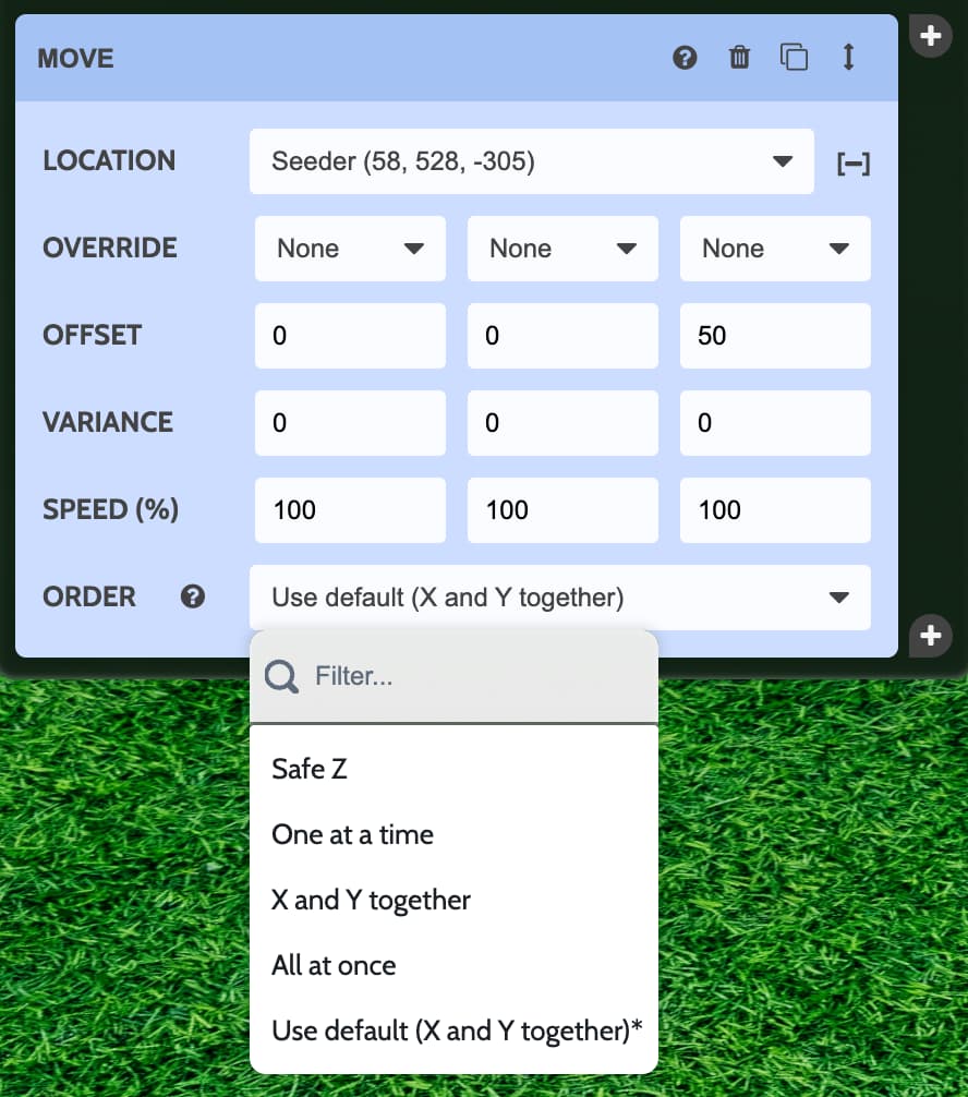 You can now control the ORDER that the three axes are operated in for each movement command. Options include: