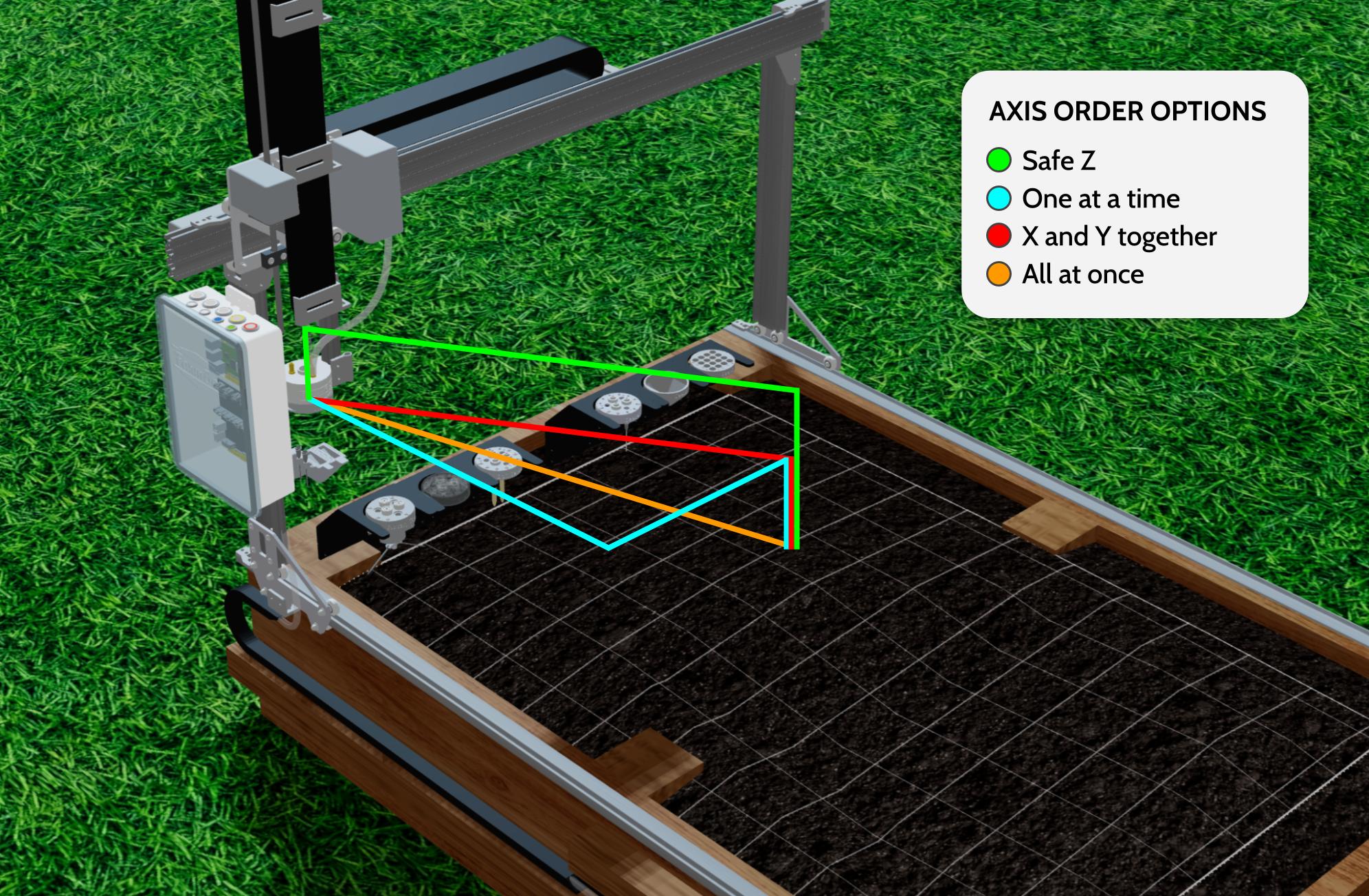 - All at once. While this method results in the fastest movements, it can be problematic for modified FarmBots carrying heavier payloads or in high density gardens where more controlled movements are needed. Note: This has been and remains the default behavior for existing machines.