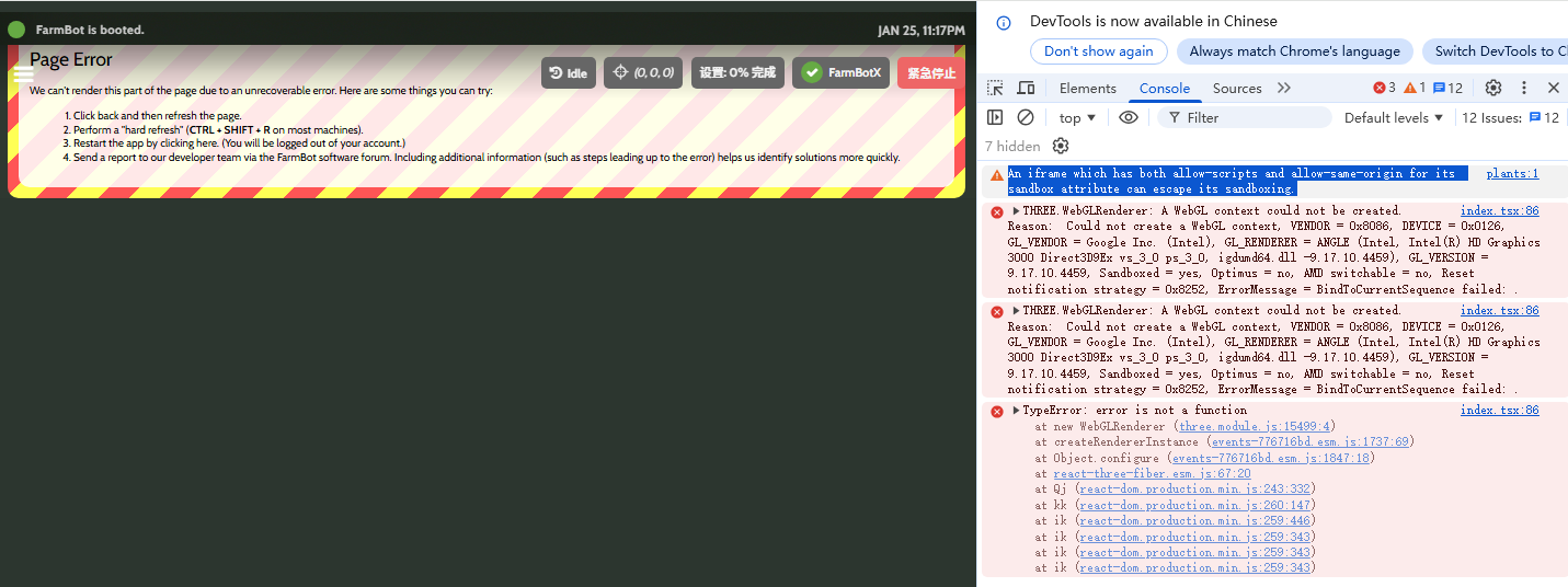 When I use the 3D map version, the Chrome browser throws an error.